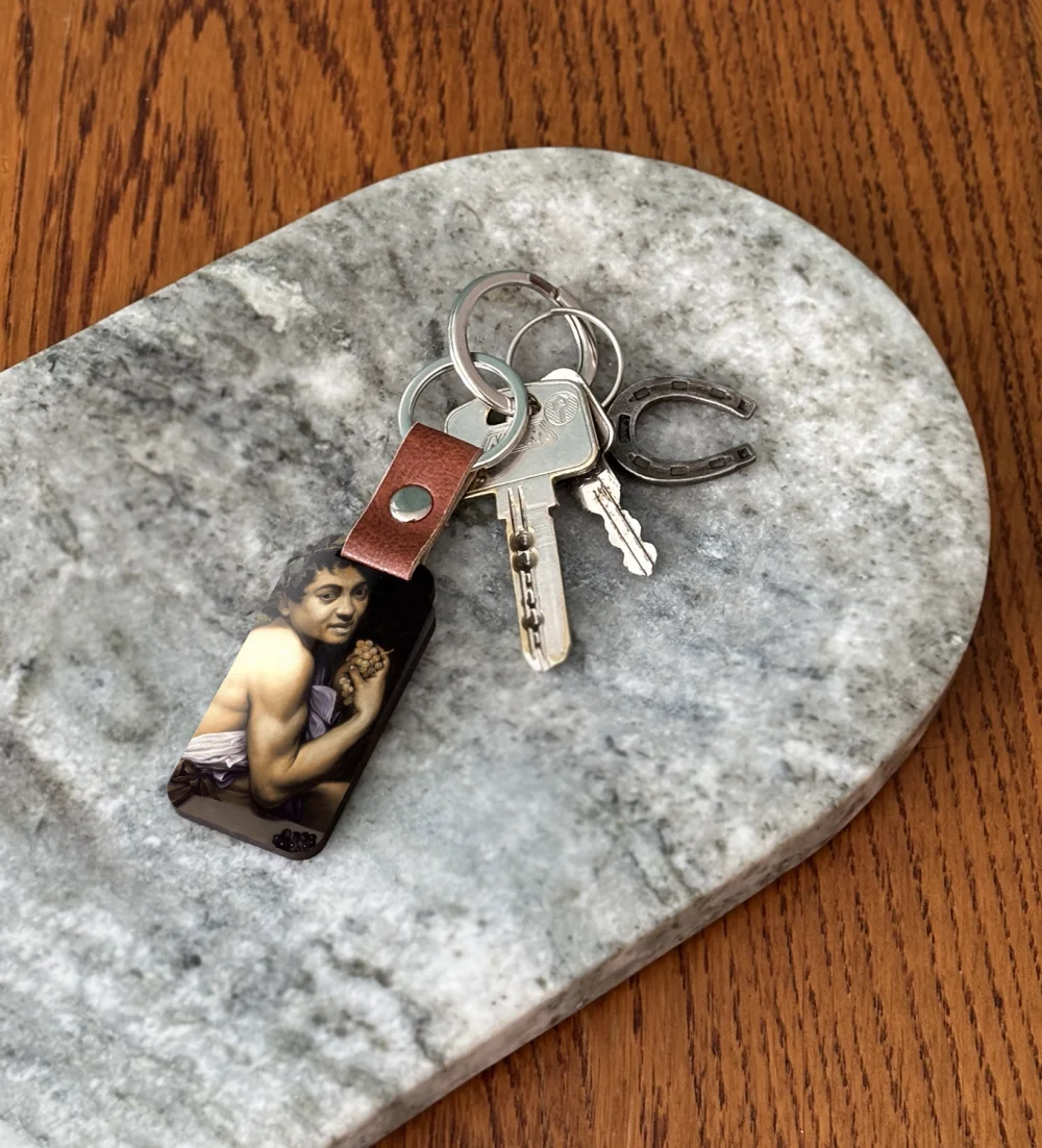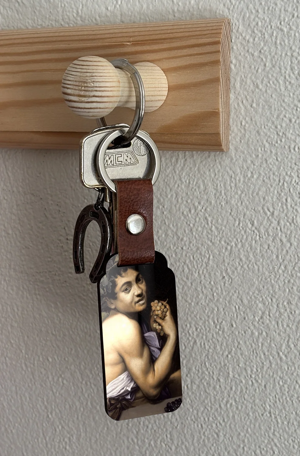 - ✨ Brelok do kluczy z obrazem Chory Bachus Caravaggia – mały, lekki i trwały gadżet ze sztuką. Świetny jako prezent i stylowy dodatek do kluczy lub torby. ❤️