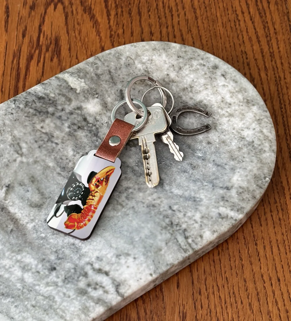 Podkreśl swoją pasję do sztuki dzięki brelokowi z obrazem Telefon-homar. To niewielki, ale wyrazisty dodatek, który możesz mieć zawsze przy sobie – przy kluczach, plecaku lub torbie 🎨