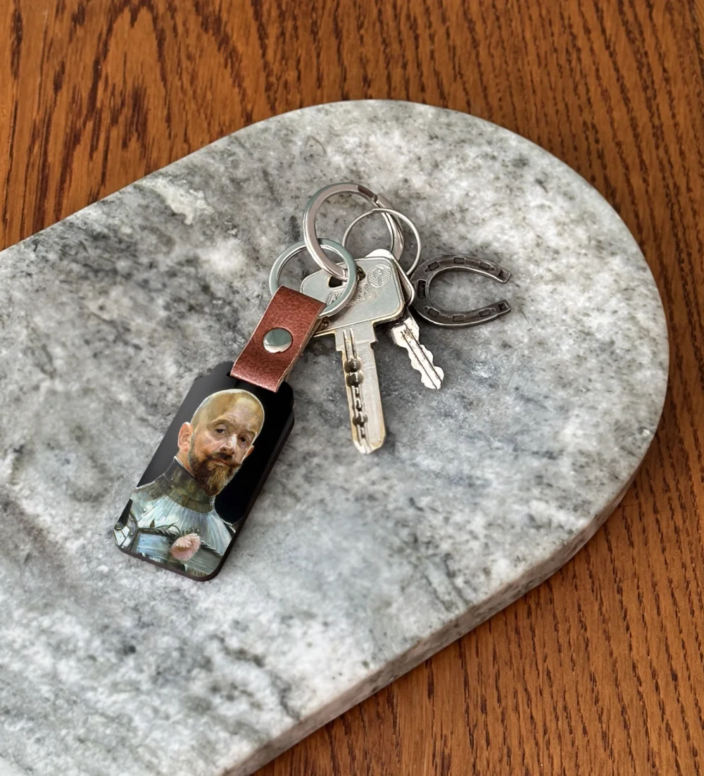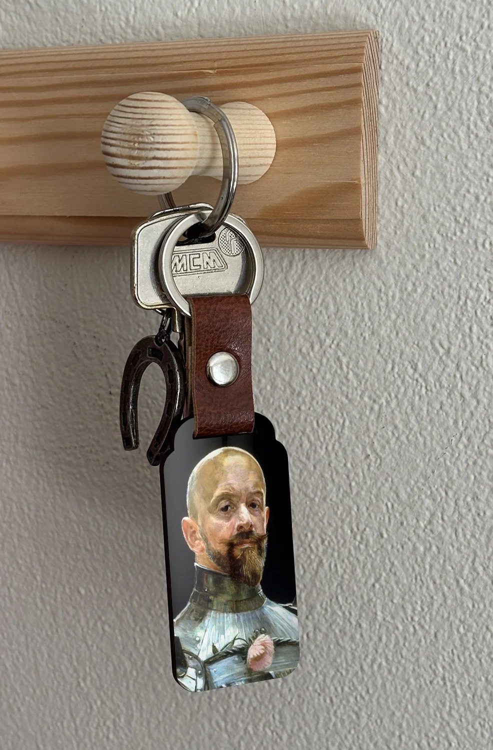 Podkreśl swoją pasję do sztuki dzięki brelokowi z obrazem Autoportret w zbroi. To niewielki, ale wyrazisty dodatek, który możesz mieć zawsze przy sobie – przy kluczach, plecaku lub torbie 🎨