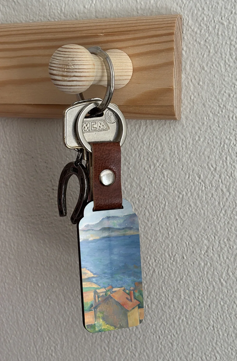 • ✨ Brelok do kluczy z obrazem Zatoka Marsylii widziana z L Estaque 1885 Paula Cezanne’a – mały, lekki i trwały gadżet ze sztuką. Świetny jako prezent i stylowy dodatek do kluczy lub torby. ❤️