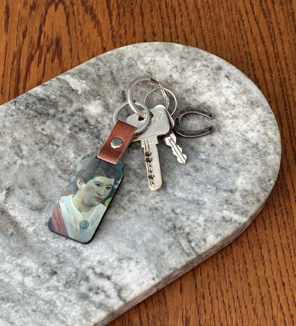 • ✨ Brelok do kluczy z obrazem Kobieta na tle martwej natury, Cezanne Paula Gauguina – mały, lekki i trwały gadżet ze sztuką. Świetny jako prezent i stylowy dodatek do kluczy lub torby. ❤️
