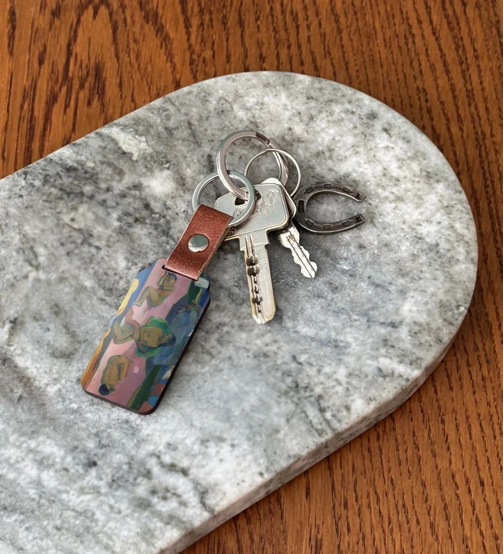 Podkreśl swoją pasję do sztuki dzięki brelokowi z obrazem Mahana no atua (Dzień Boga). To niewielki, ale wyrazisty dodatek, który możesz mieć zawsze przy sobie – przy kluczach, plecaku lub torbie 🎨