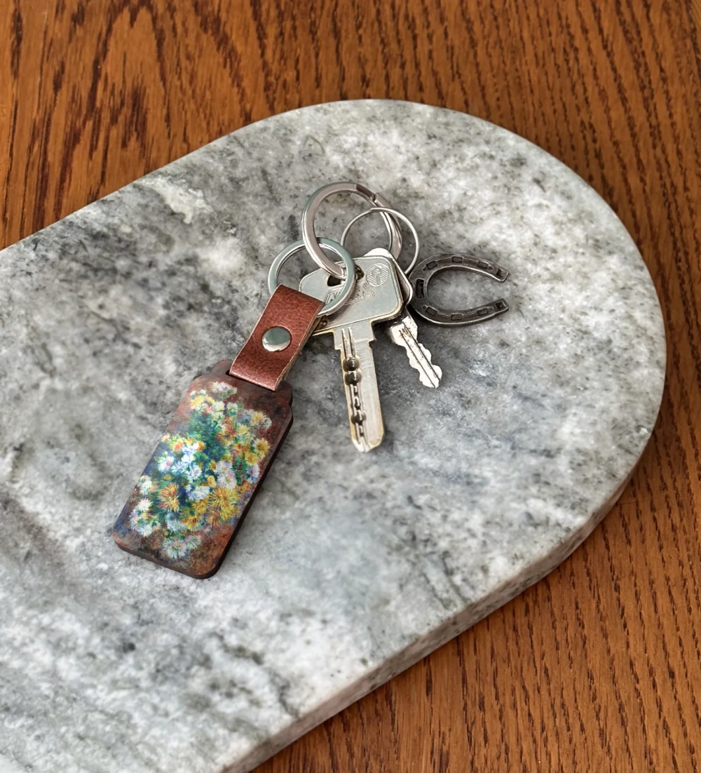 - ✨ Brelok do kluczy z obrazem Chryzantemy Pierre’a-Auguste’a Renoira – mały, lekki i trwały gadżet ze sztuką. Świetny jako prezent i stylowy dodatek do kluczy lub torby. ❤️