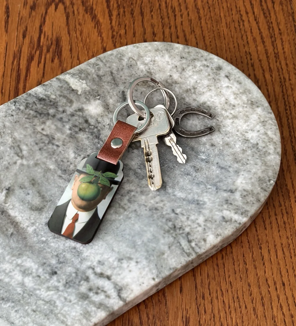 - ✨ Brelok do kluczy z obrazem Syn człowieczy René Magritte’a – mały, lekki i trwały gadżet ze sztuką. Świetny jako prezent i stylowy dodatek do kluczy lub torby. ❤️