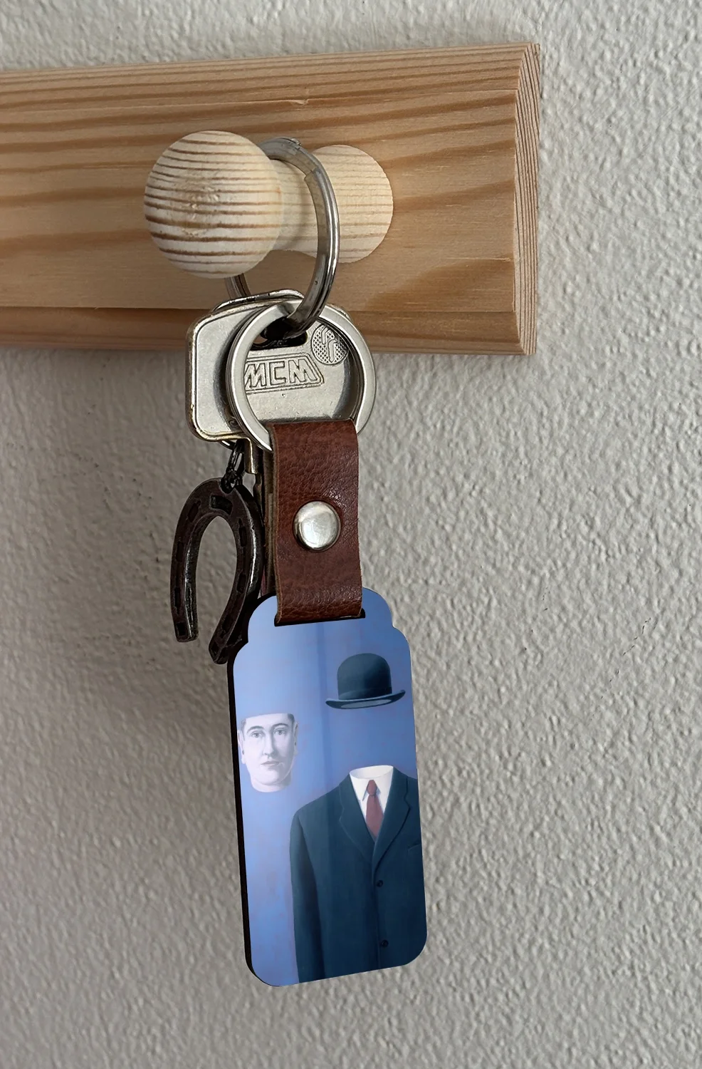 - ✨ Brelok do kluczy z obrazem Pielgrzym René Magritte’a – mały, lekki i trwały gadżet ze sztuką. Świetny jako prezent i stylowy dodatek do kluczy lub torby. ❤️
