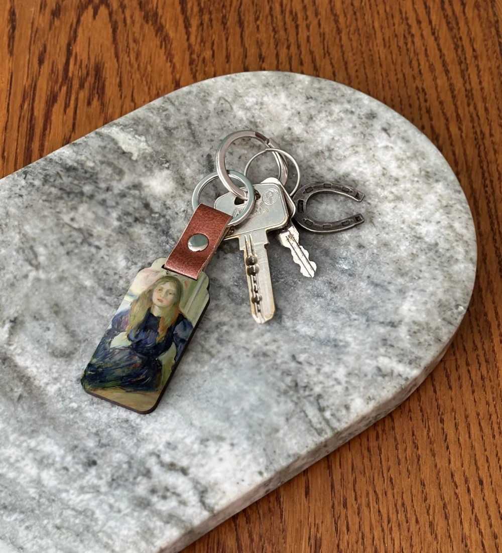Podkreśl swoją pasję do sztuki dzięki brelokowi z obrazem Julie Manet i jej piesek Laërte. To niewielki, ale wyrazisty dodatek, który możesz mieć zawsze przy sobie – przy kluczach, plecaku lub torbie 🎨