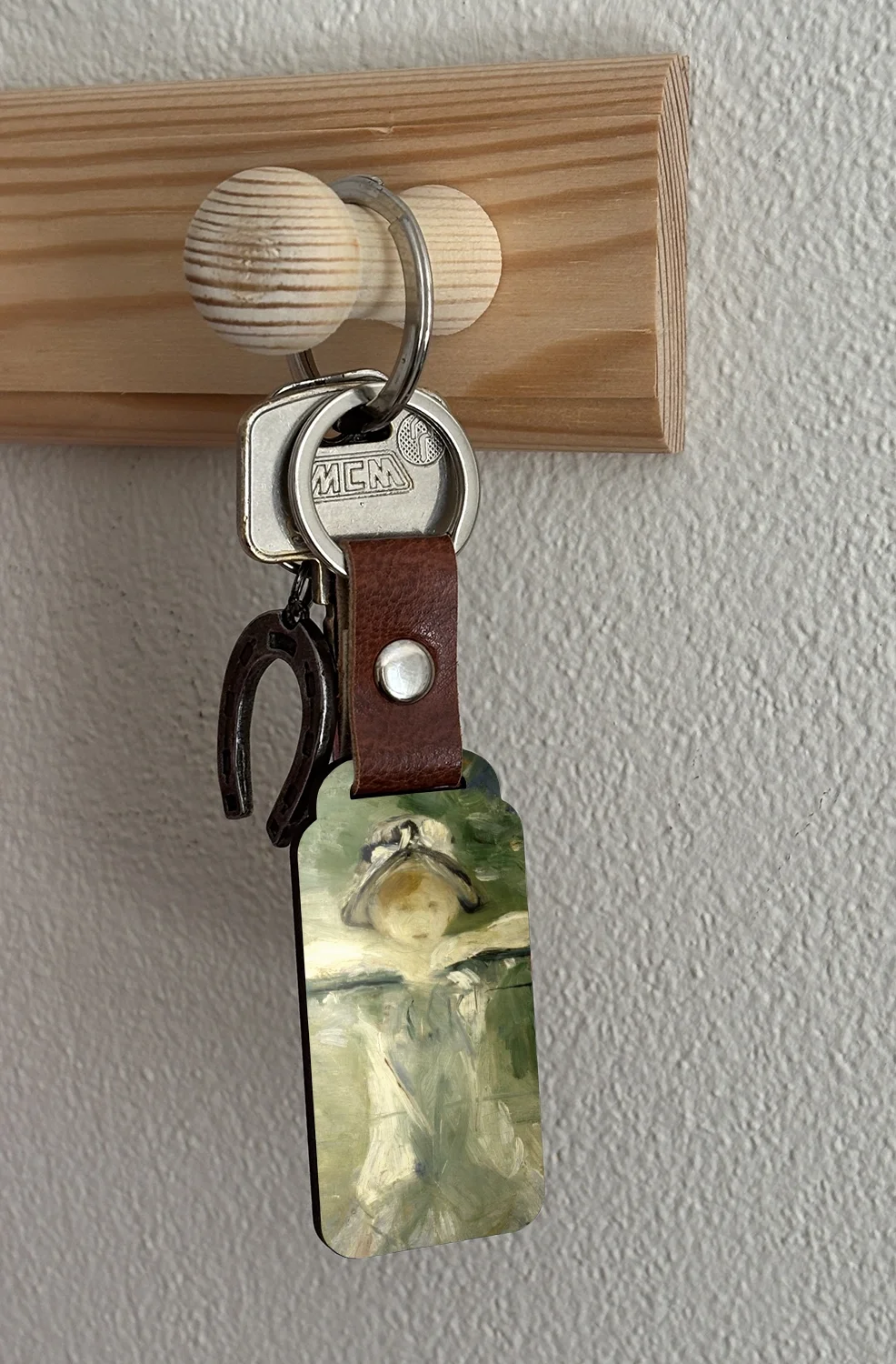 - ✨ Brelok do kluczy z obrazem Krzesło do kosza Berthe Morisot – mały, lekki i trwały gadżet ze sztuką. Świetny jako prezent i stylowy dodatek do kluczy lub torby. ❤️