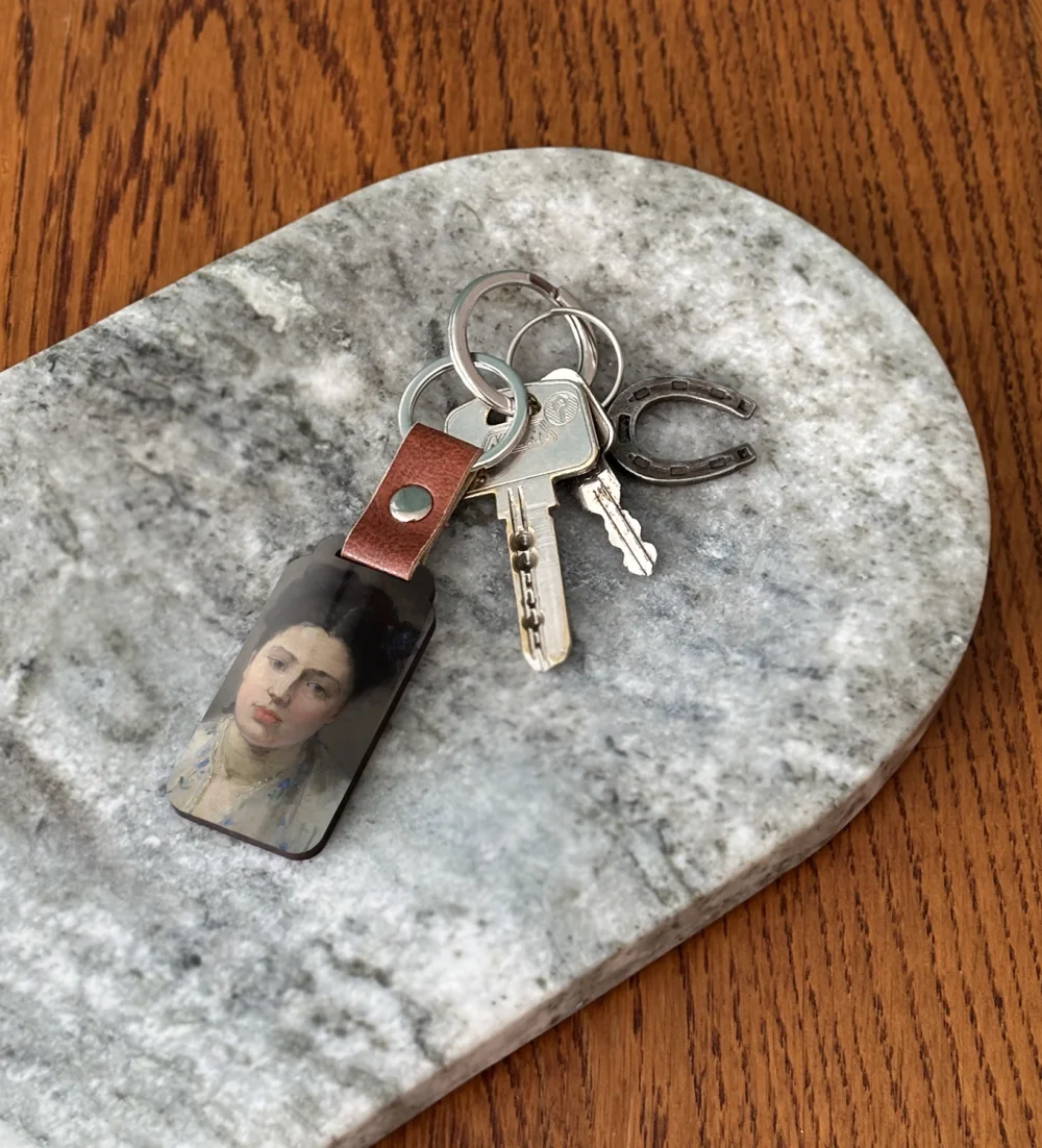 Podkreśl swoją pasję do sztuki dzięki brelokowi z obrazem Młoda kobieta. To niewielki, ale wyrazisty dodatek, który możesz mieć zawsze przy sobie – przy kluczach, plecaku lub torbie 🎨