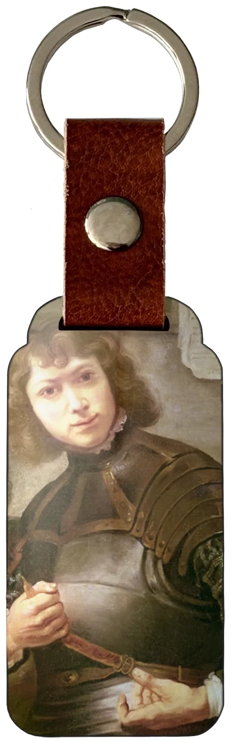 - ✨ Brelok do kluczy z obrazem Młody mężczyzna w złotej zbroi Rembrandta – mały, lekki i trwały gadżet ze sztuką. Świetny jako prezent i stylowy dodatek do kluczy lub torby. ❤️