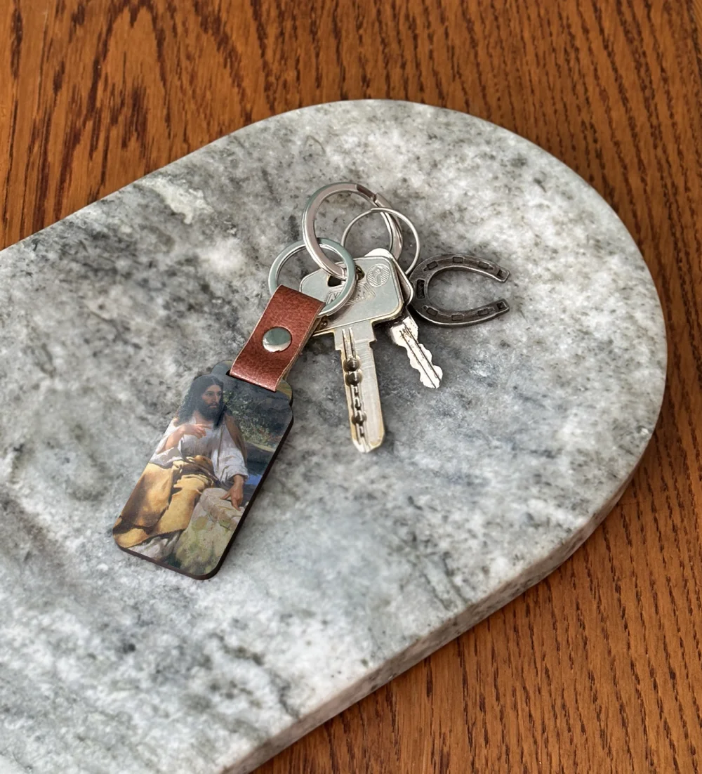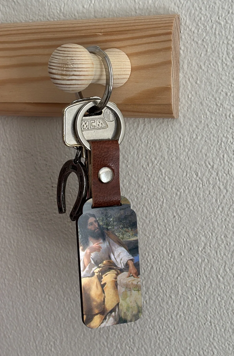 • ✨ Brelok do kluczy z obrazem Chrystus i Samarytanka Henryka Siemiradzkiego – mały, lekki i trwały gadżet ze sztuką. Świetny jako prezent i stylowy dodatek do kluczy lub torby. ❤️