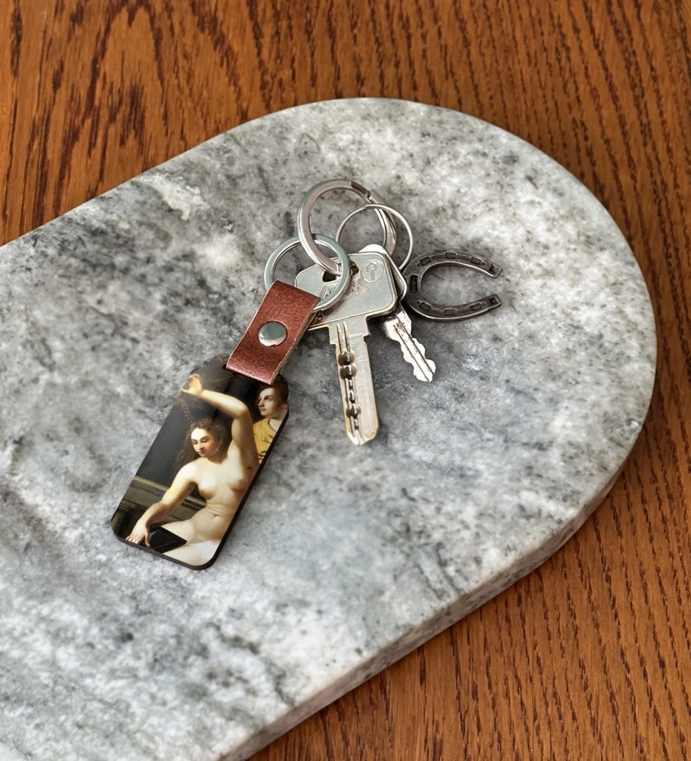 - ✨ Brelok do kluczy z obrazem Batszeba w swojej kąpieli Artemisii Gentileschi – mały, lekki i trwały gadżet ze sztuką. Świetny jako prezent i stylowy dodatek do kluczy lub torby. ❤️