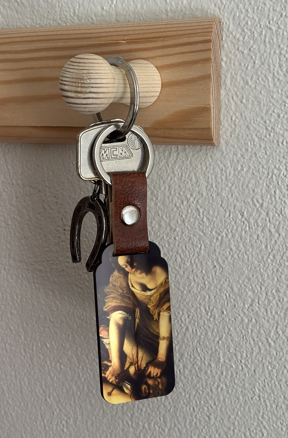 - ✨ Brelok do kluczy z obrazem Judyta odcinająca głowę Holofornesowi Artemisii Gentileschi – mały, lekki i trwały gadżet ze sztuką. Świetny jako prezent i stylowy dodatek do kluczy lub torby. ❤️
