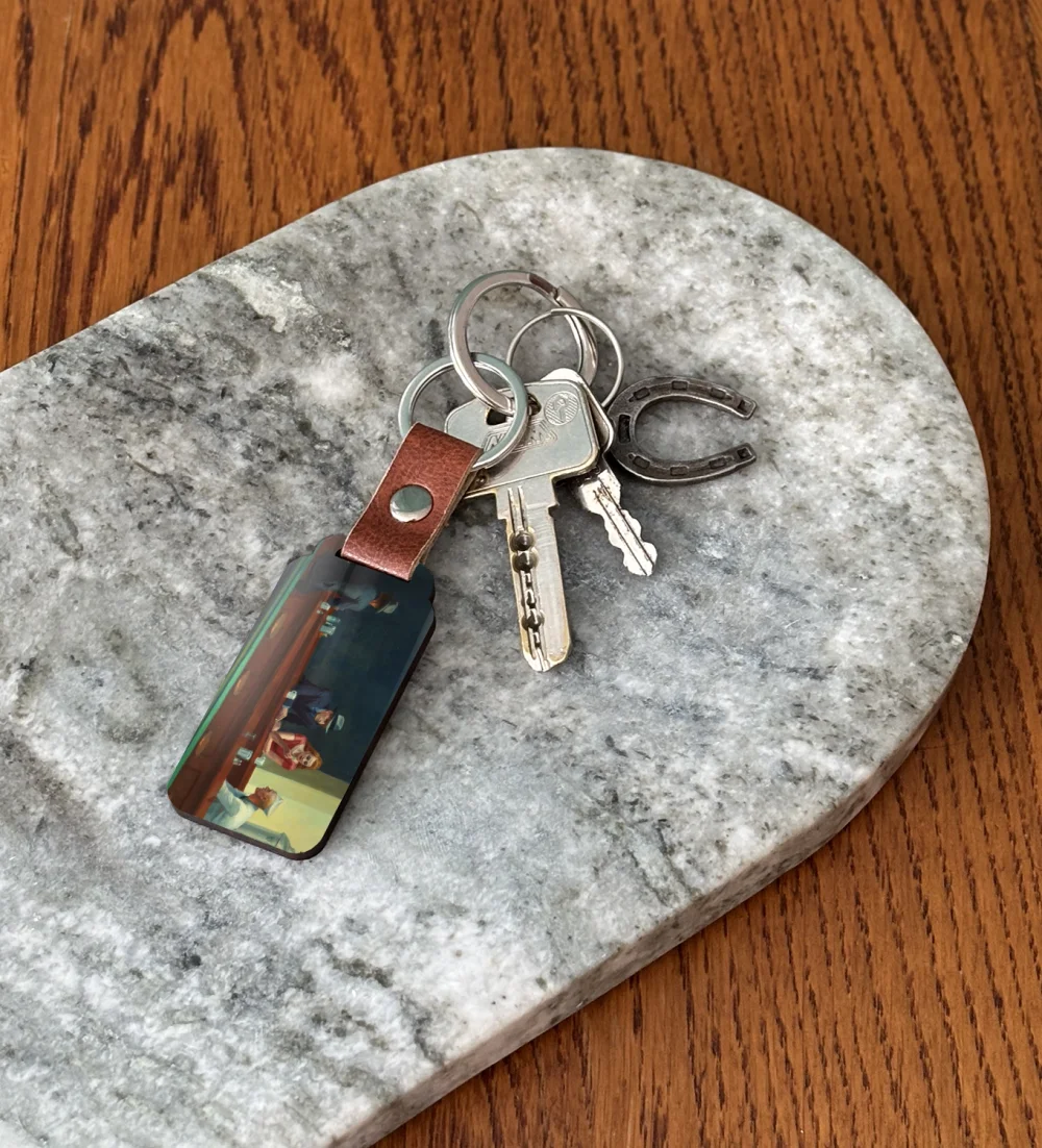 - ✨ Brelok do kluczy z obrazem Nocne marki Edwarda Hoppera – mały, lekki i trwały gadżet ze sztuką. Świetny jako prezent i stylowy dodatek do kluczy lub torby. ❤️