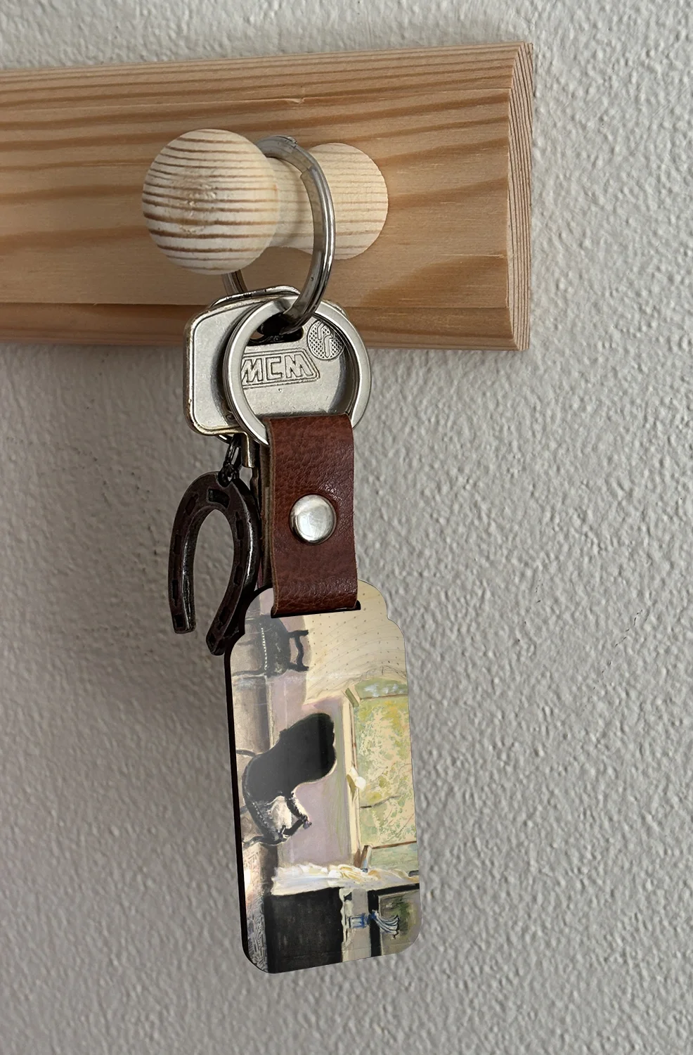 - ✨ Brelok do kluczy z obrazem Wnętrze pracowni artysty Leona Wyczółkowskiego – mały, lekki i trwały gadżet ze sztuką. Świetny jako prezent i stylowy dodatek do kluczy lub torby. ❤️