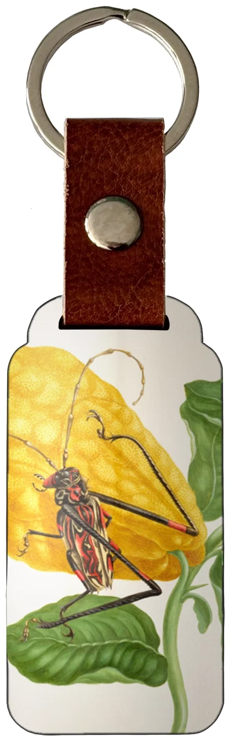 Brelok do kluczy Cytryna z gąsienicą małpy i chrząszczem harlekin - Maria Sibylla Merian