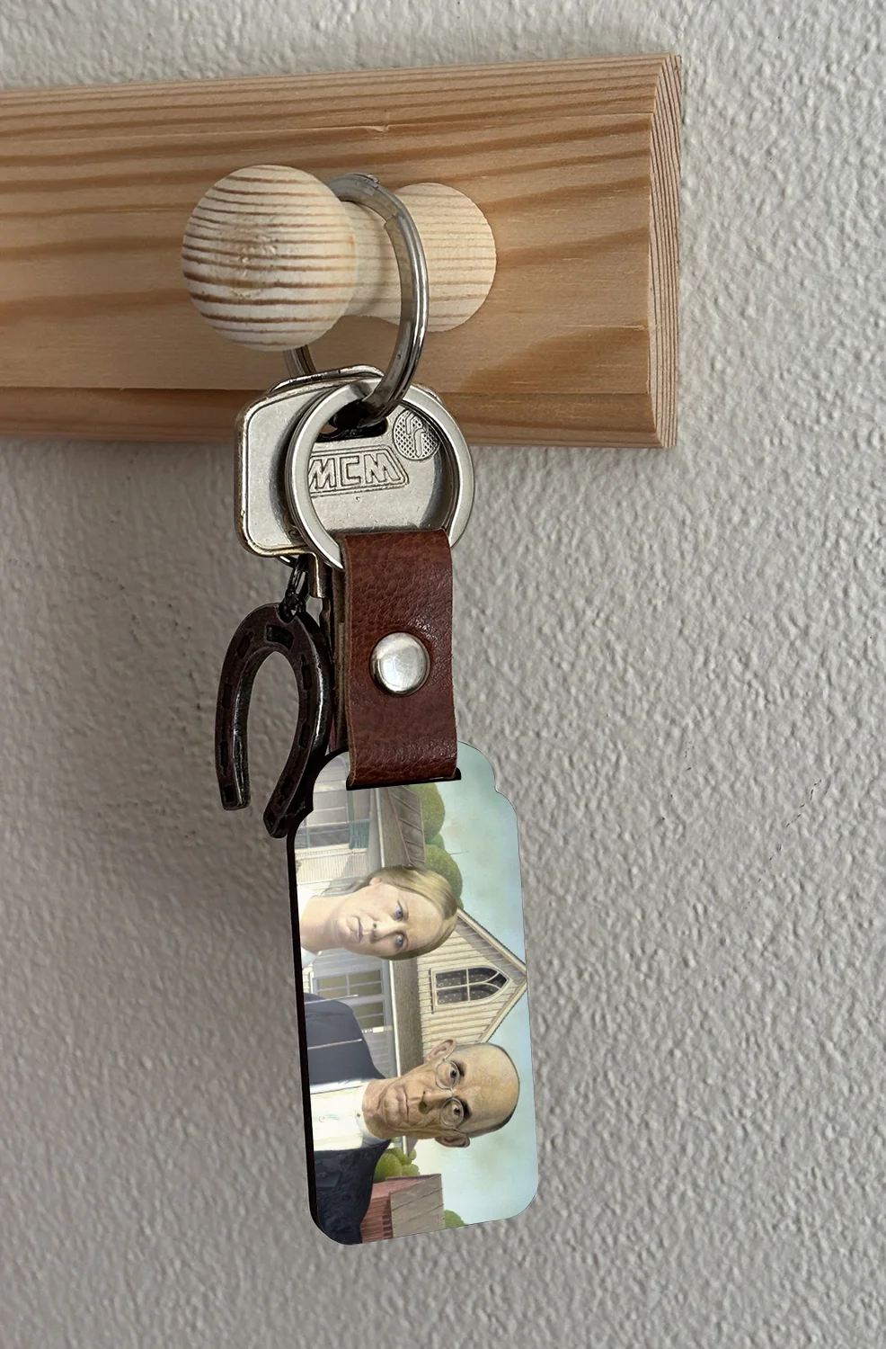 - ✨ Brelok do kluczy z obrazem American Gothic Granta Wooda – mały, lekki i trwały gadżet ze sztuką. Świetny jako prezent i stylowy dodatek do kluczy lub torby. ❤️