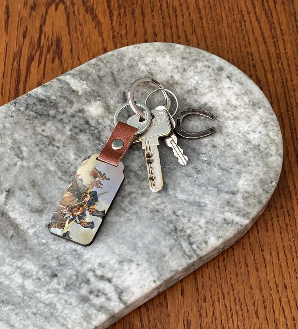 Podkreśl swoją pasję do sztuki dzięki brelokowi z obrazem Szarża na baterie rosyjskie pod Stoczkiem. To niewielki, ale wyrazisty dodatek, który możesz mieć zawsze przy sobie – przy kluczach, plecaku lub torbie 🎨