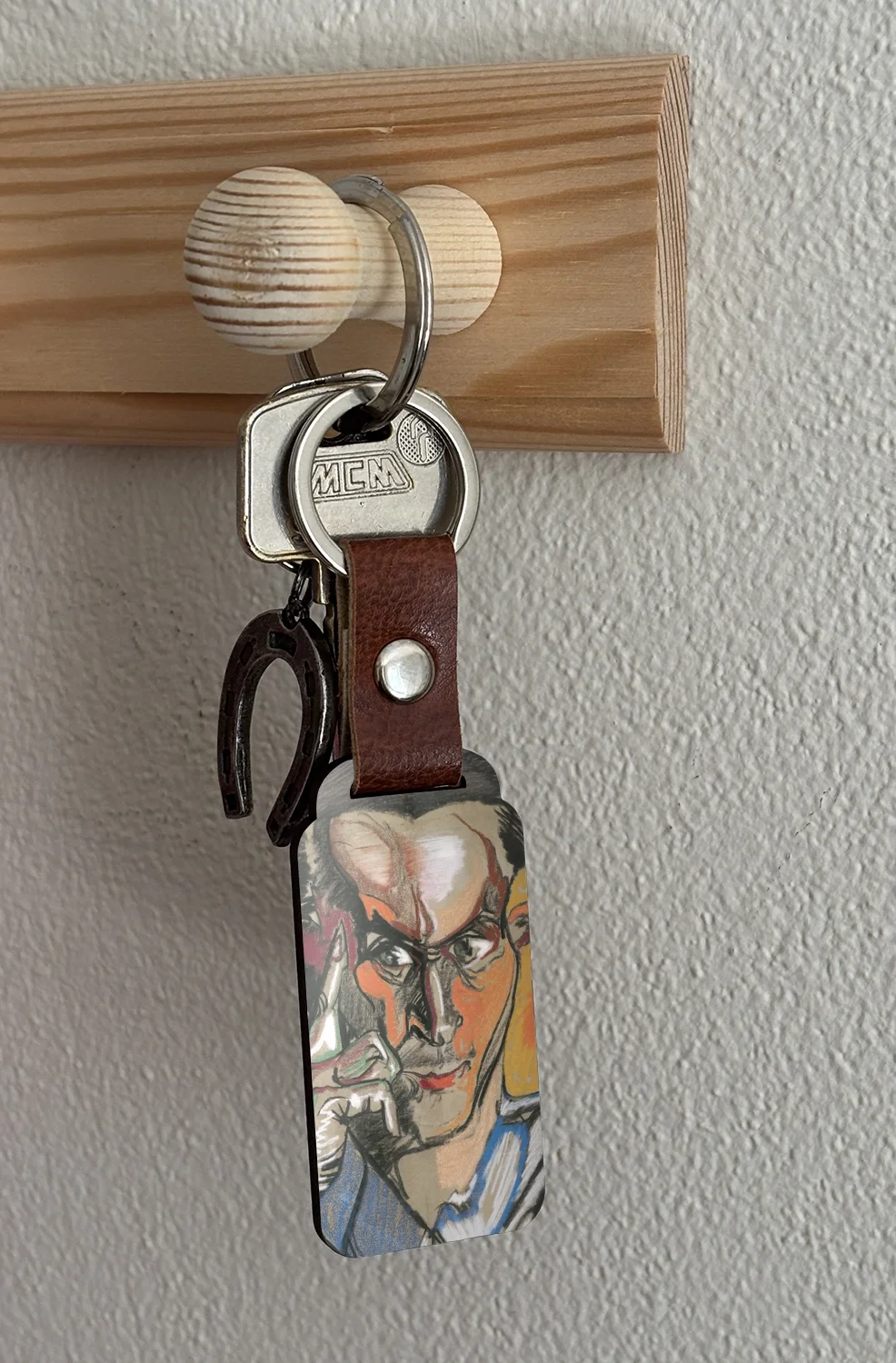 - ✨ Brelok do kluczy z obrazem Autoportret, 1918 Witkacego – mały, lekki i trwały gadżet ze sztuką. Świetny jako prezent i stylowy dodatek do kluczy lub torby. ❤️