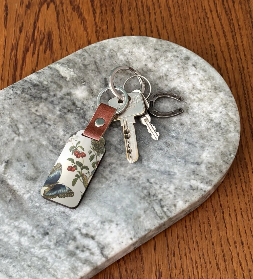 • ✨ Brelok do kluczy z obrazem Great Blue Butterflies and Red Fruits Marii Sibylli Merian – mały, lekki i trwały gadżet ze sztuką. Świetny jako prezent i stylowy dodatek do kluczy lub torby. ❤️