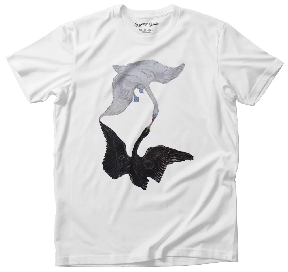 - Koszulka Łabędź, Nr 1 Hilma af Klint w wersji biała. Stylowa koszulka z nadrukiem dzieła sztuki, łączy wygodę i artystyczny charakter. Idealna propozycja dla miłośników sztuki.