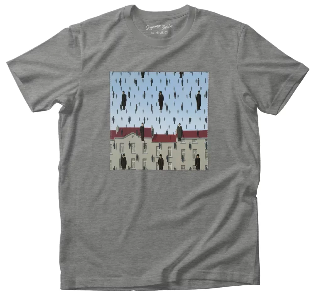 • Koszulka z naszywką Spadanie René Magritte Wysoka gramatura, trwałość i unikalny detal nadający charakteru. Każda sztuka szyta na zamówienie – wyjątkowa, solidna i stylowa!