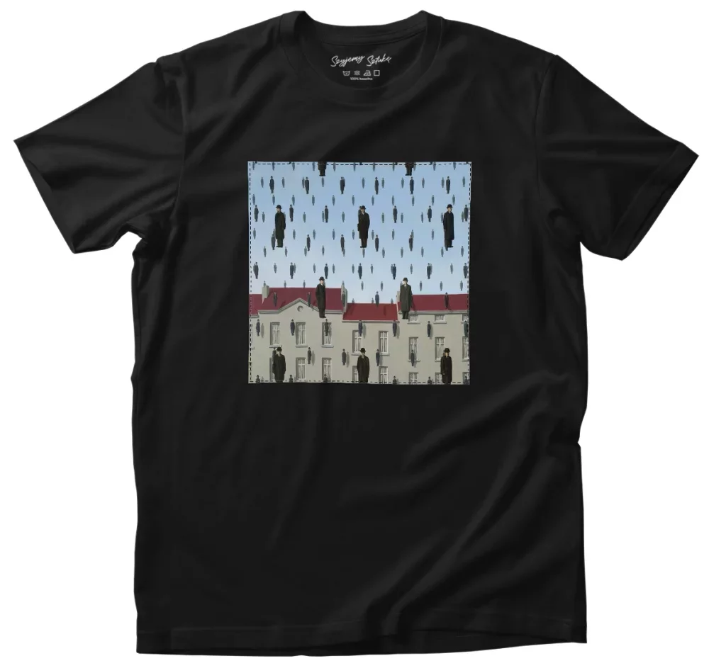 • Koszulka z naszywką Spadanie René Magritte Wysoka gramatura, trwałość i unikalny detal nadający charakteru. Każda sztuka szyta na zamówienie – wyjątkowa, solidna i stylowa!