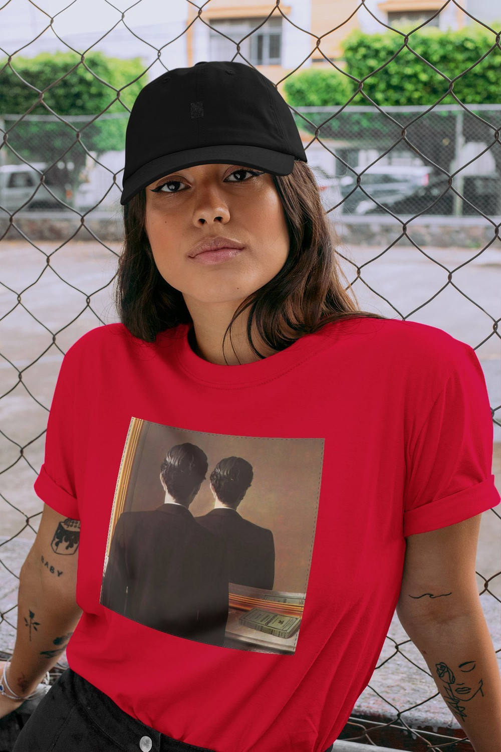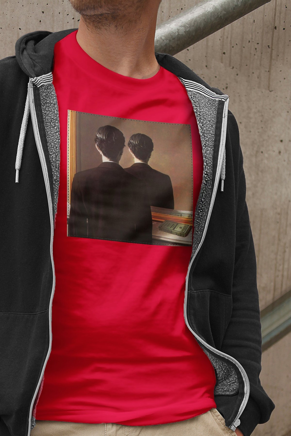 • Koszulka z naszywką Nie reprodukować René Magritte Wysoka gramatura, trwałość i unikalny detal nadający charakteru. Każda sztuka szyta na zamówienie – wyjątkowa, solidna i stylowa!