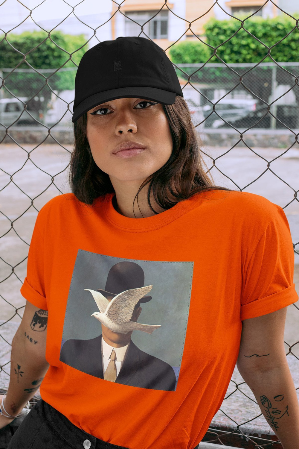 Koszulka z naszywką Mężczyzna w meloniku René Magritte 👕✨