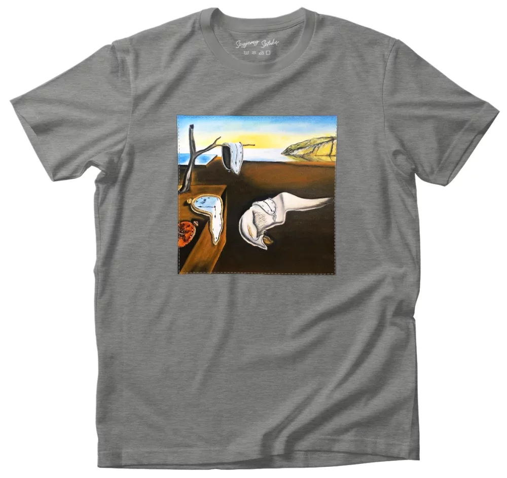 • Koszulka z naszywką Trwałość pamięci Salvador Dali Wysoka gramatura, trwałość i unikalny detal nadający charakteru. Każda sztuka szyta na zamówienie – wyjątkowa, solidna i stylowa!