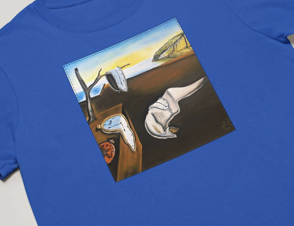 • Koszulka z naszywką Trwałość pamięci Salvador Dali Wysoka gramatura, trwałość i unikalny detal nadający charakteru. Każda sztuka szyta na zamówienie – wyjątkowa, solidna i stylowa!