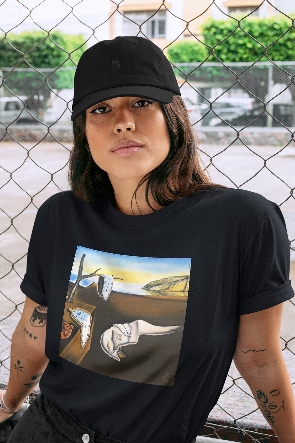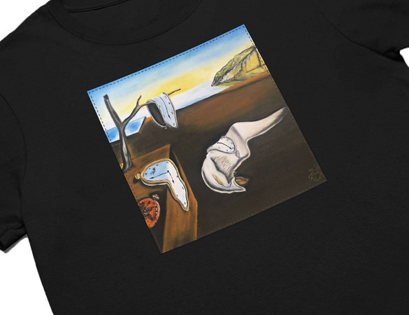 • Koszulka z naszywką Trwałość pamięci Salvador Dali Wysoka gramatura, trwałość i unikalny detal nadający charakteru. Każda sztuka szyta na zamówienie – wyjątkowa, solidna i stylowa!