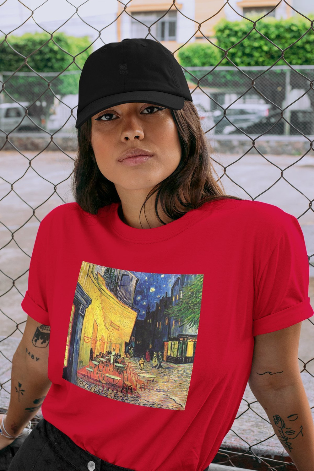 • Koszulka z naszywką Taras kawiarni w nocy Vincent Van Gogh Wysoka gramatura, trwałość i unikalny detal nadający charakteru. Każda sztuka szyta na zamówienie – wyjątkowa, solidna i stylowa!