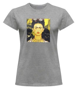 Bluzka damska z naszywką Autoportret z cierniowym naszyjnikiem i kolibrem Frida Kahlo