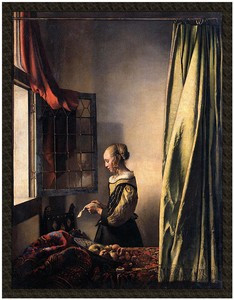 Dziewczyna czytająca list przy otwartym oknie