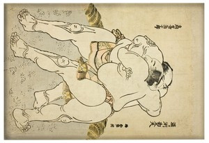 Podkładka Zapaśnicy sumo Uzugafuchi Kandayu i Takasaki Ichijuro Katsushika Hokusai 36x29cm