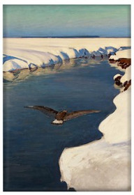 Magnes Pejzaż zimowy z rzeką i ptakiem Julian Fałat