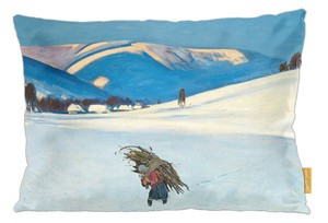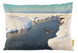 Poduszka Pejzaż zimowy z rzeką i ptakiem Julian Fałat