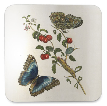 Podkładka pod kubek Great Blue Butterflies and Red Fruits Maria Sibylla Merian