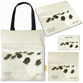 Zestaw prezentowy Szyjemy Sztukę torba + podkładka + magnes + ściereczka Kuropatwy na śniegu