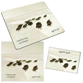 ( ilość produktów: 12 )Zestaw prezentowy Szyjemy Sztukę podkładka + magnes + ściereczka Kuropatwy na śniegu