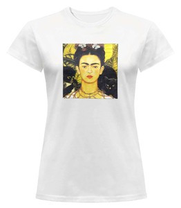 Bluzka damska z naszywką Autoportret z cierniowym naszyjnikiem i kolibrem Frida Kahlo