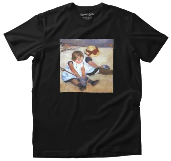Koszulka z naszywką Dziewczynki bawiące się na plaży Mary Cassatt