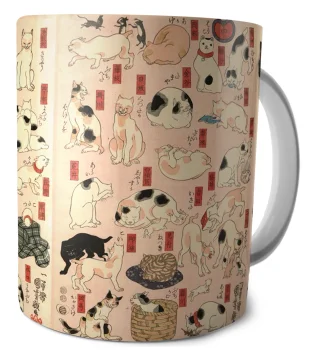 Kubek 55 kotów reprezentujących pięćdziesiąt trzy stacje Tokaido Utagawa Kuniyoshi